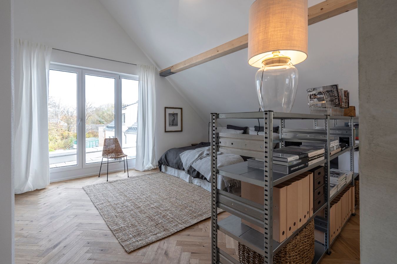 Die Wohnung strahlt durch ihre teilweise 5 m hohen Decken, sowie den freigelegten Dachbalken, den Gauben und Erkern einen besonderen Charme aus. Ein Kamin kann angeschlossen werden. Die Wohnung ist barrierefrei und daher für alle Altersgruppen gut geeignet.