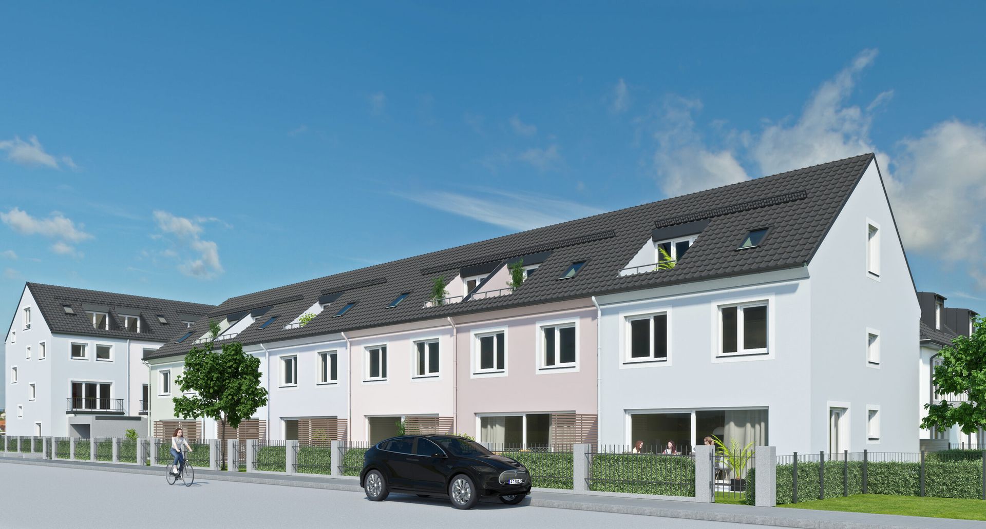 In Garching bei München (Hochbrück) entstehen 14 Eigentumswohnungen (verkauft), 7 Splitlevel-Häuser (Verkauft) und 6 Reihenhäuser (davon 4 verfügbar) im klein Kopenhagen Stil. Angelehnt an die Natur wurde sich für Fassadenfarben entschieden, die sich in unserem natürlichen Umfeld wiederfinden.