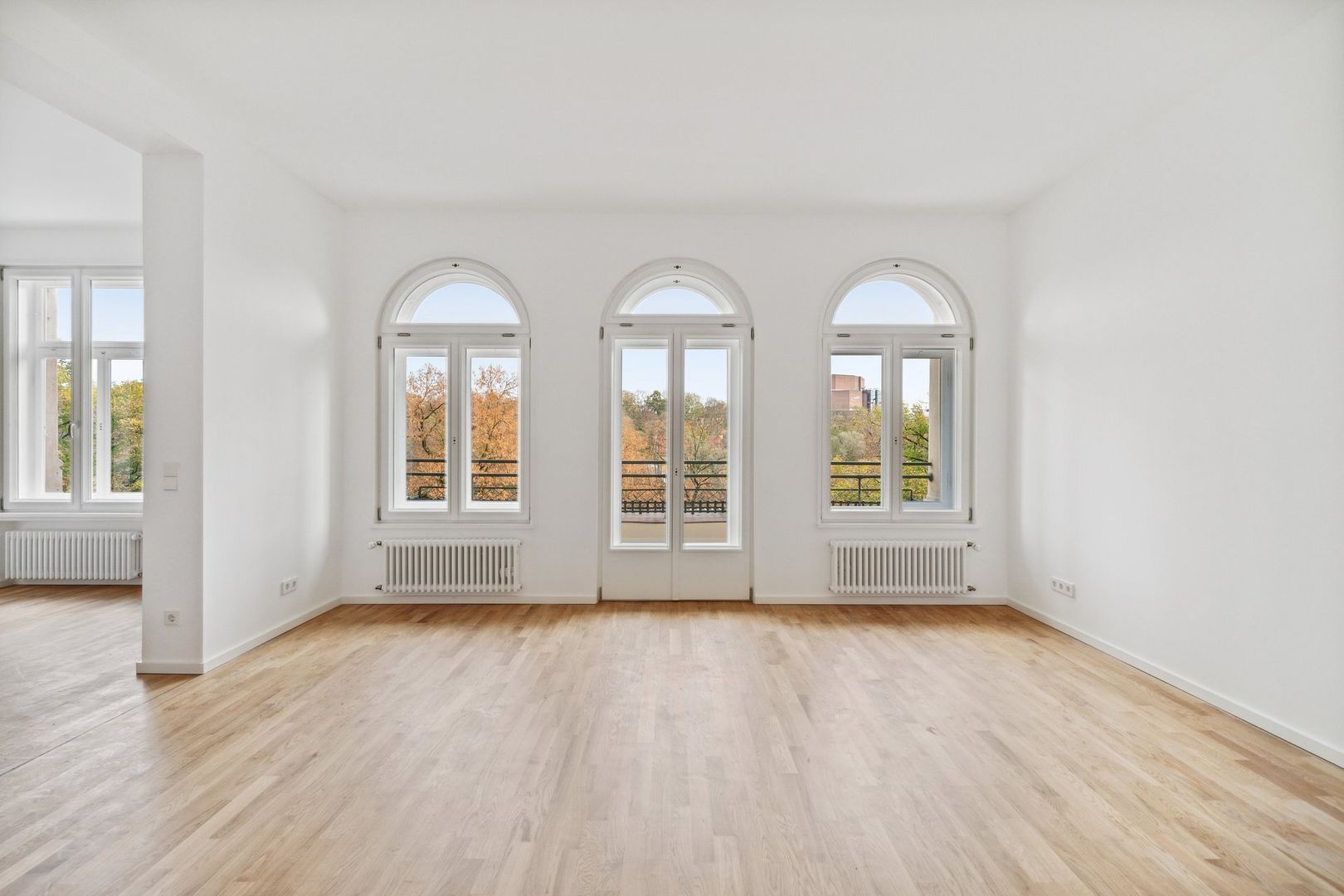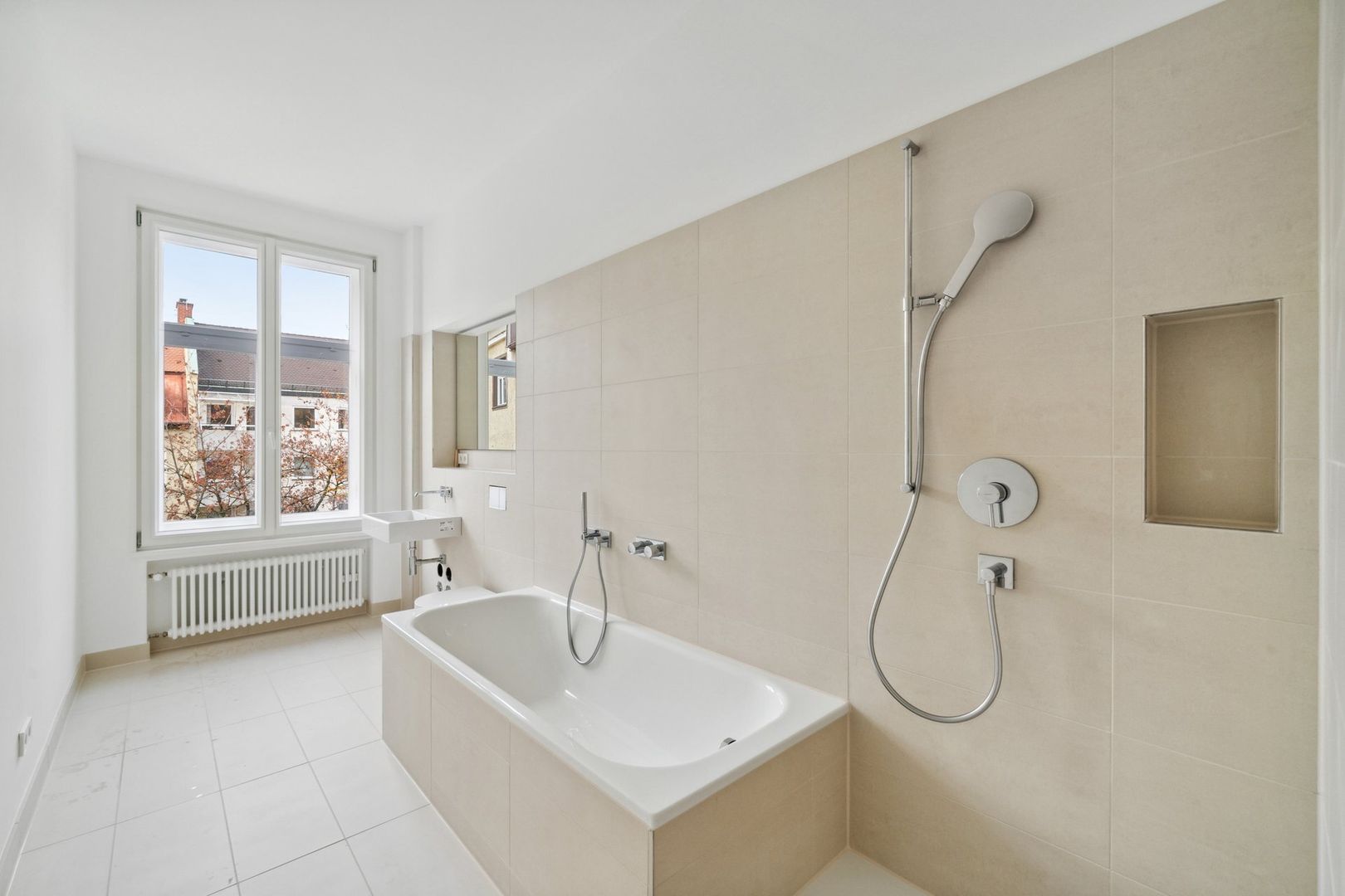Die Wohnungen selbst präsentieren sich mit ca. 3 m hohen Deckenhöhen, einem modernem Wohnkomfort und aufwändig sanierten, repräsentativen Wohnräumen. Im Rahmen einer aufwändigen Sanierung wurden 2022 neues Eichen-Parkett verlegt, weiße Flügeltüren eingebaut und die Bäder zeitlos-elegant gestaltet.